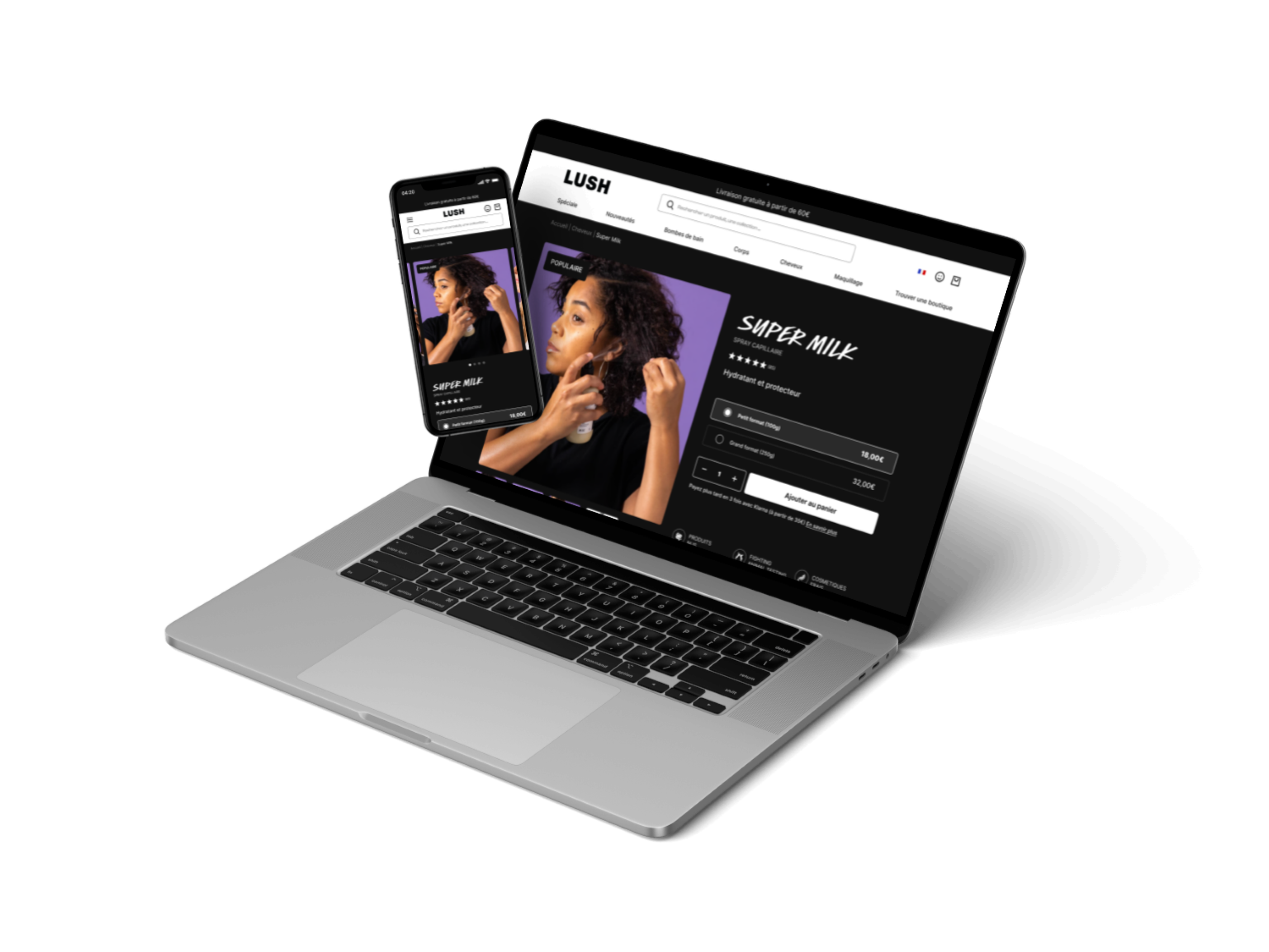 Merci d'avoir exploré la refonte du site Lush. Ce projet met en lumière une amélioration complète de l'expérience utilisateur en revisitant la homepage, la page liste et la fiche produit. En tant que graphiste et UI designer freelance basé à Lille, j'ai veillé à conserver l'identité visuelle de Lush tout en optimisant l'interface pour une meilleure navigation.